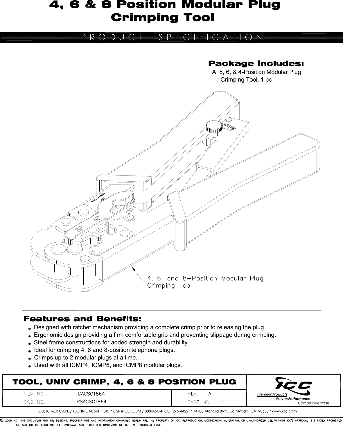Consulte online ou descarregue Ficha Técnica para Ferramentas para montagem de cabos ICC ICACSCT864. ICC ICACSCT864 Manual do Utilizador